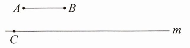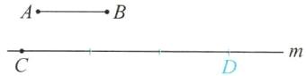 4. 用圆规在直线 m 上画出线段 CD,使 CD 的长度是 AB 的 3 倍。