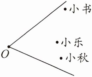 5. 小书、小乐和小秋参加了学校运动会的实心球项目,他们站在点 O 处投掷实心球,下图是他们的实心球落地位置的记录。那么他们三人中,第一名是( ),第二名是( ),第三名是( )。(实心球投得越远,成绩越好)