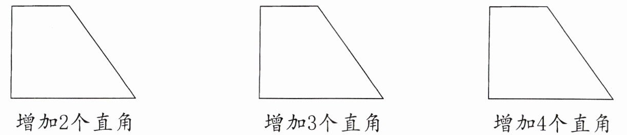 解析观察题图可知,每个图形中都有2个直角。解决此类问题时,先明确需要增加的直角个数,再画线段,并用三角尺上的直角比一比,看是否符合题意。注意:有的图形画法不唯一。