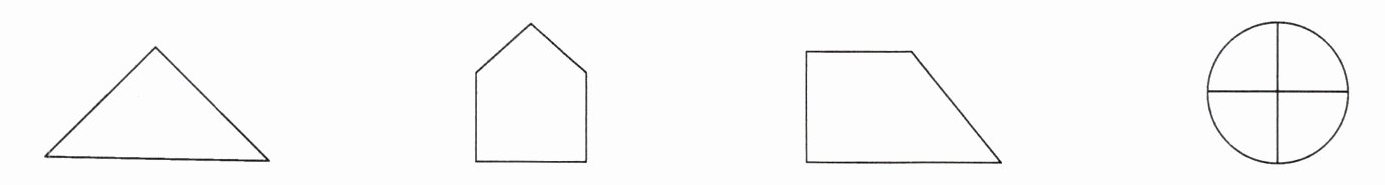 4. 找出下面各图形中的直角,用“¬”标出来,再数一数各有多少个直角。
