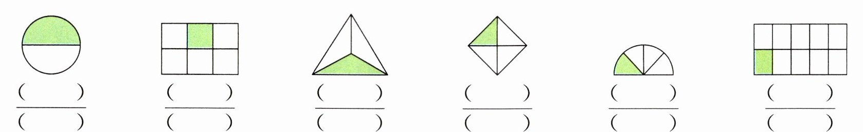 5. 想一想,画一画,用分数表示各图形中的涂色部分。