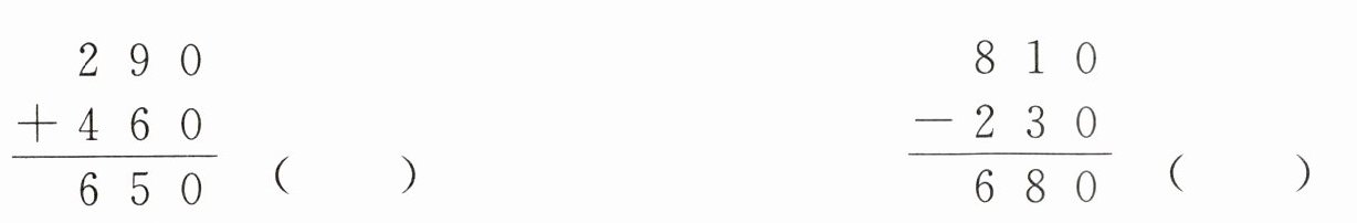 2.× 改正:290+460=750 × 改正:810-230=580 (竖式略)