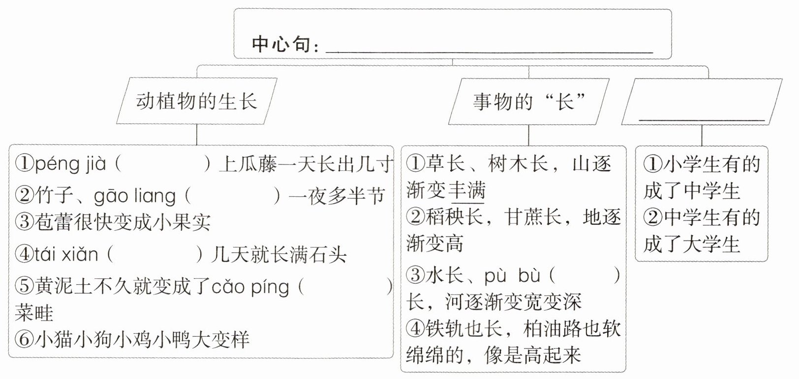 。4. 课文第二段是怎样写出“动植物在夏天生长非常迅速”这一中心意思的?(教材课后2题变式)______