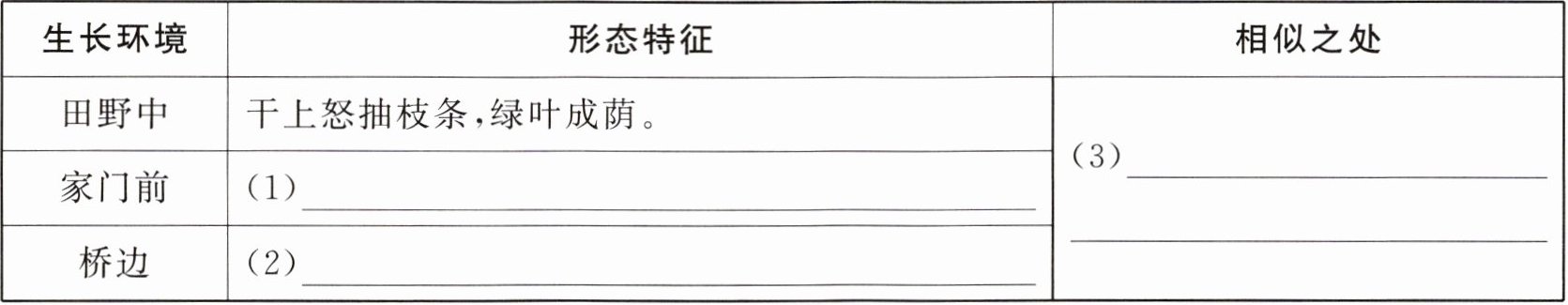|田野中|干上怒抽枝条,绿叶成荫。|(3)______|