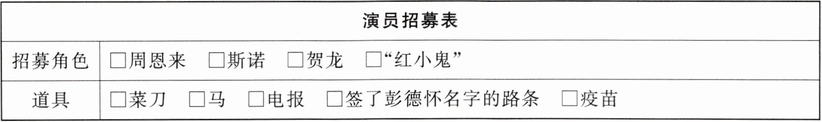 |招募角色|□周恩来 □斯诺 □贺龙 □“红小鬼”|