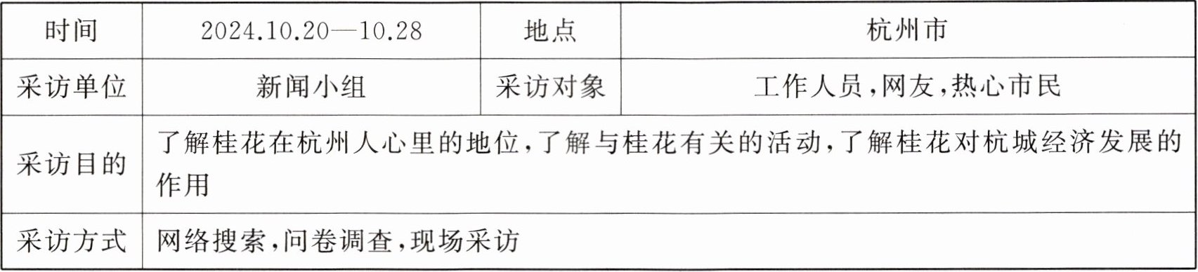 桂花是杭州市的市花,班级的新闻小组同学拟开展“寻访桂花之旅”采访活动,请你帮助他们整理素材、制作成果。