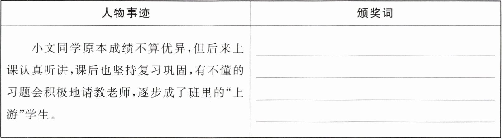 |小文同学原本成绩不算优异,但后来上课认真听讲,课后也坚持复习巩固,有不懂的习题会积极地请教老师,逐步成了班里的“上游”学生。|__________________|