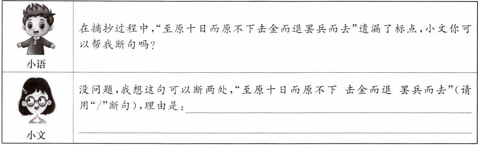 (2)小语和小文在断句时发生了以下对话,请将他们的对话补充完整。