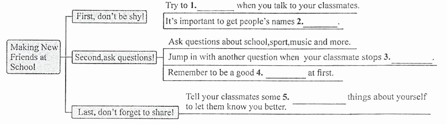 1. smile 2. right 3. talking 4. listener 5. interesting