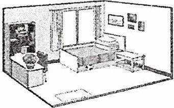 the bed. There is a pot (花盆) on the desk with a plant 24. in