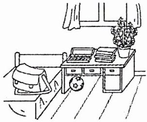 the desk. My pencil box is on it too. Five pencils are 9. in