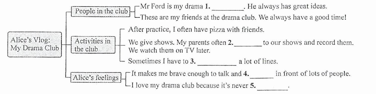 1. teacher 2. come 3. remember 4. sing 5. boring