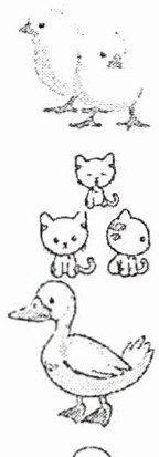 21. They are (two) chickens 22. I can see three cats/Three 23. No, it's a duck/No, it isn't. It's a duck 24. It's an apple tree