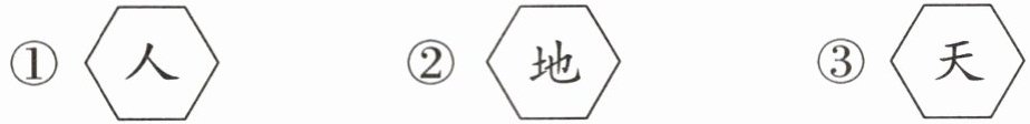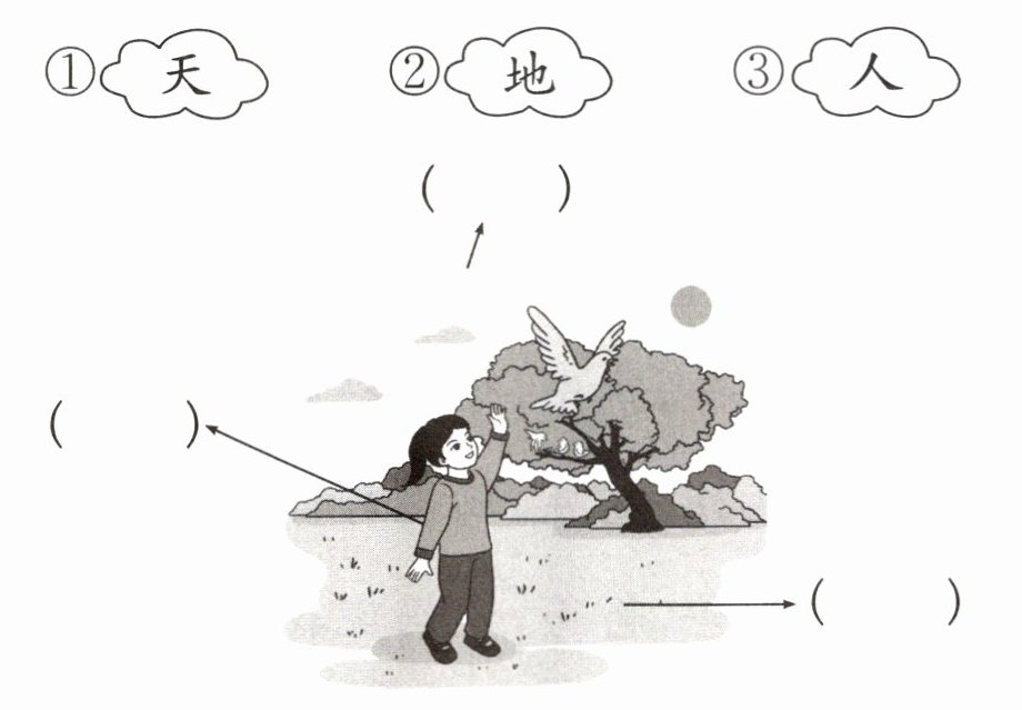 ○圈出“天”“你”“地”“我”“人”(根据学生实际识字情况,假设都认识这五个字,“他”未圈出或根据实际情况;若都认识全部则“他”也圈出)。
