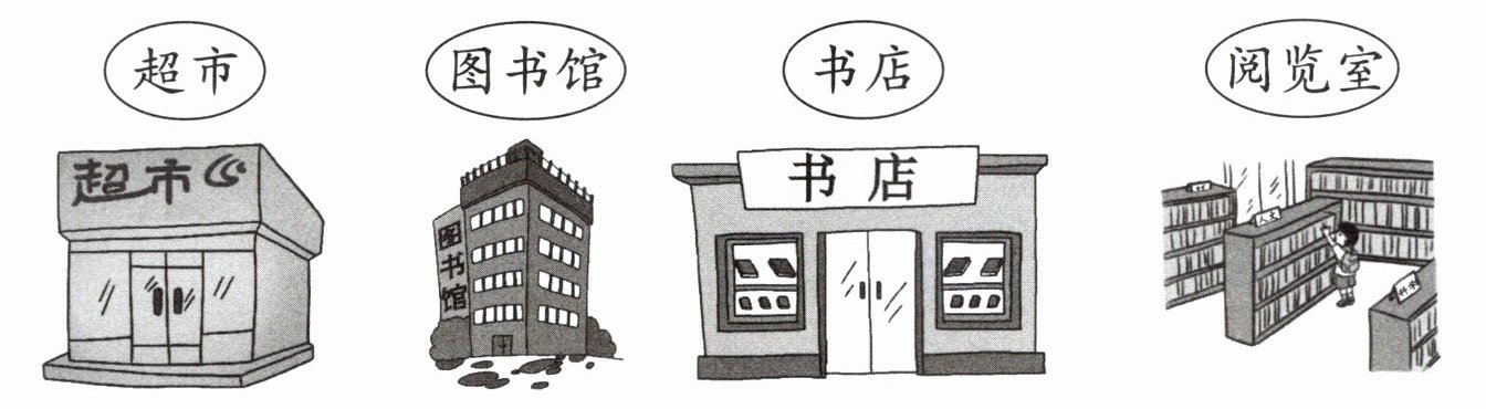 一、如果你想读书,可以去哪些地方呢?看图,在正确的下面画“√”,错误的下面画“×”。