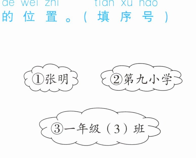 ①张明 ②第九小学 ③一年级(3)班