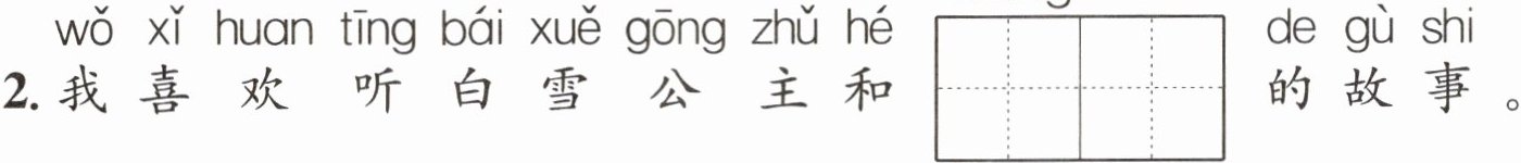 2. 我喜欢听白雪公主和$\begin{array}{|c|c|}\hline & \\\hline\end{array}$\begin{array}{|c|c|}\hline & \\\hline $wáng zǐ的故事。