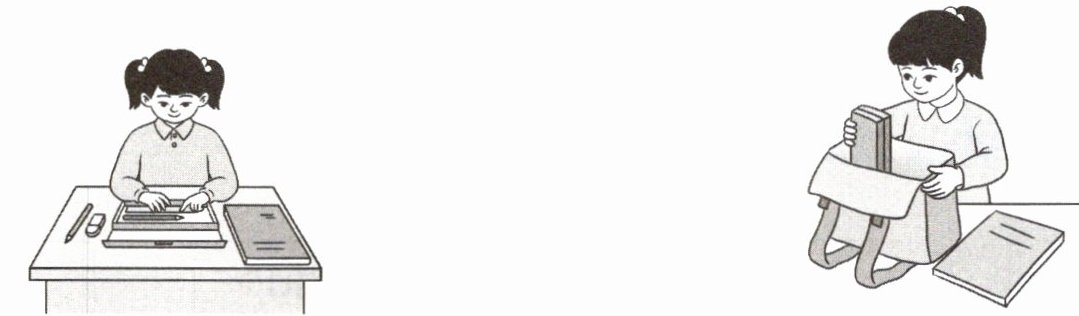 1. 小书包里有什么?用“____”在儿歌中画出来。