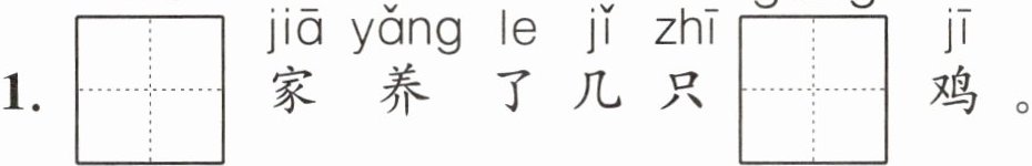 $1. \begin{array}{|c|c|c|c|} \hline & & & \\ \hline \end{array}\begin{array}{|c|c|c|c|} \hline & & & \\ \hline wǒ $家养了几只$\begin{array}{|c|c|c|c|} \hline & & & \\ \hline \end{array}\begin{array}{|c|c|c|c|} \hline & & & \\ \hline gōng $鸡。