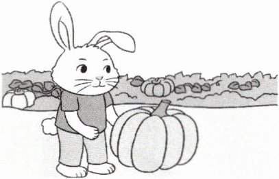 小兔可以把南瓜立起来,像滚皮球一样滚回家。(gǔn)