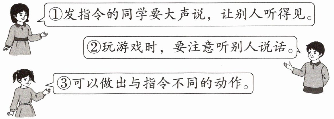 ①发指令的同学要大声说,让别人听得见。