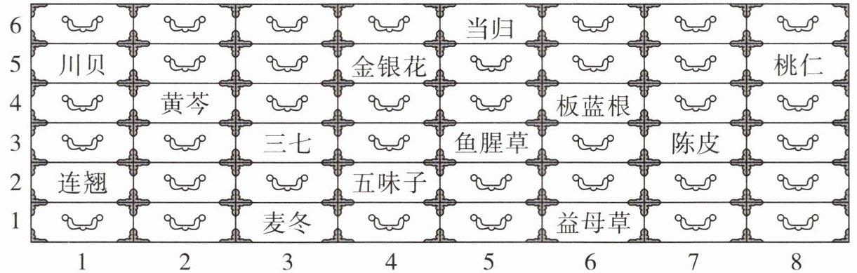 四、仔细观察,用数对表示中药的位置。