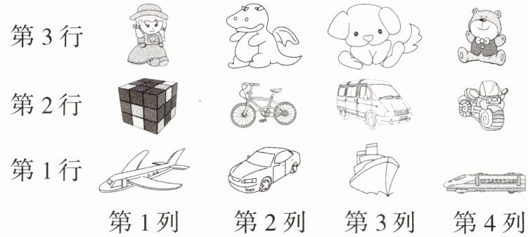 2. 小明套中了第3列第2行的玩具,在图中将其圈出;小兰套中了,它的位置是( , )。