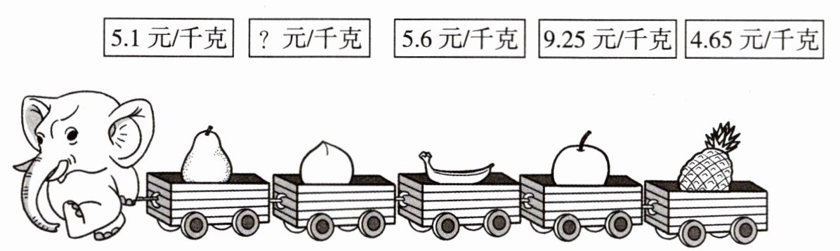 $ \begin{array}{|c|c|c|c|c|} \hline 5.1 元/千克 &? 元/千克 & 5.6 元/千克 & 9.25 元/千克 & 4.65 元/千克 \\ \hline \end{array}\\ \hline $