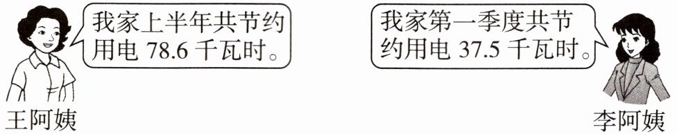 $\begin{array}{l}\begin{array}{l}我家上半年共节约 \\用电 78.6 千瓦时。\end{array} \\王阿姨 \end{array}$