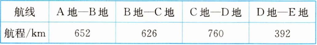 |航线|A 地—B 地|B 地—C 地|C 地—D 地|D 地—E 地|
