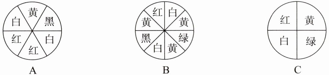 3. 下面三个转盘中,如果想让指针停在黄色区域的可能性大一些,那么应选(