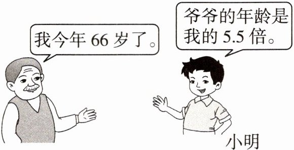 解:设小明今年x岁。5.5x=66 x=12 答:小明今年12岁。