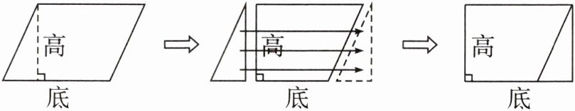 )平行四边形的面积(填“大于”“小于”或“等于”)。因为长方形的面积 = 长×宽,所以平行四边形的面积 = (底×高