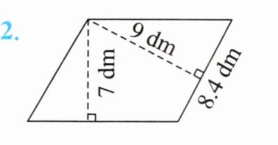 2. 一个平行四边形的底是 $ 12 \mathrm{cm} $,高是 $ 8 \mathrm{cm} $,它的面积是(
