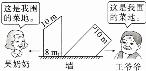 吴奶奶的菜地面积:(40-10)×8÷2=120(m²) 王爷爷的菜地面积:(40-10)×10÷2=150(m²) 120m²<150m² 150-120=30(m²) 王爷爷围的菜地面积大,大30m²。