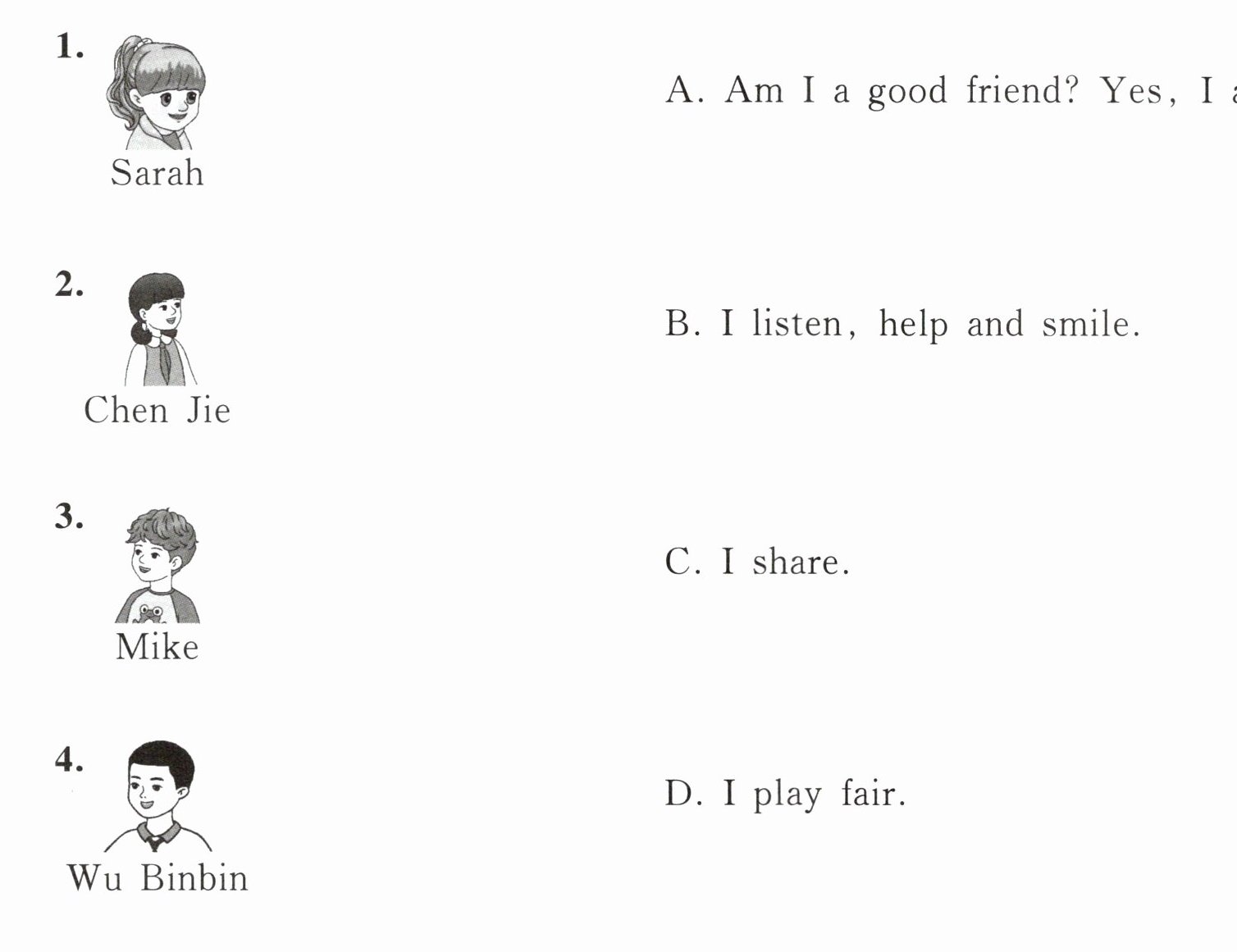 Ⅱ. Listen and match. (听录音,将人物与他们所说的话连线配对。)