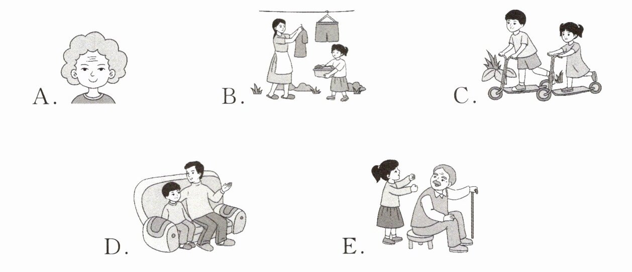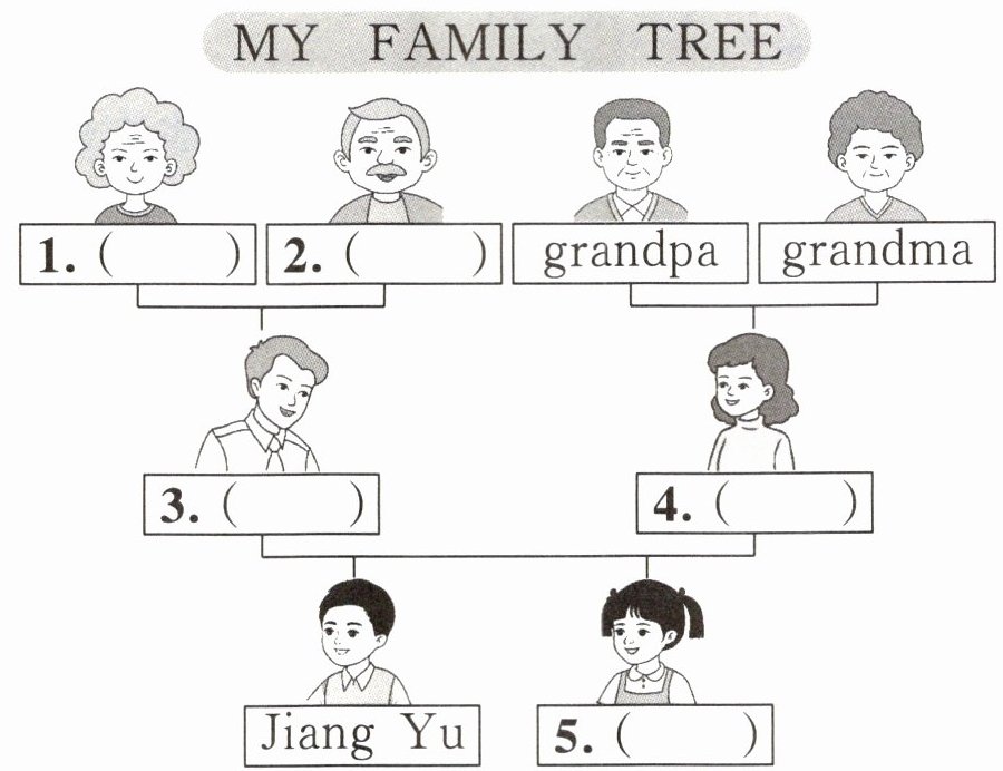 Ⅳ. Look and choose. (根据图片,选择正确的单词补全 Jiang Yu 的家谱。)