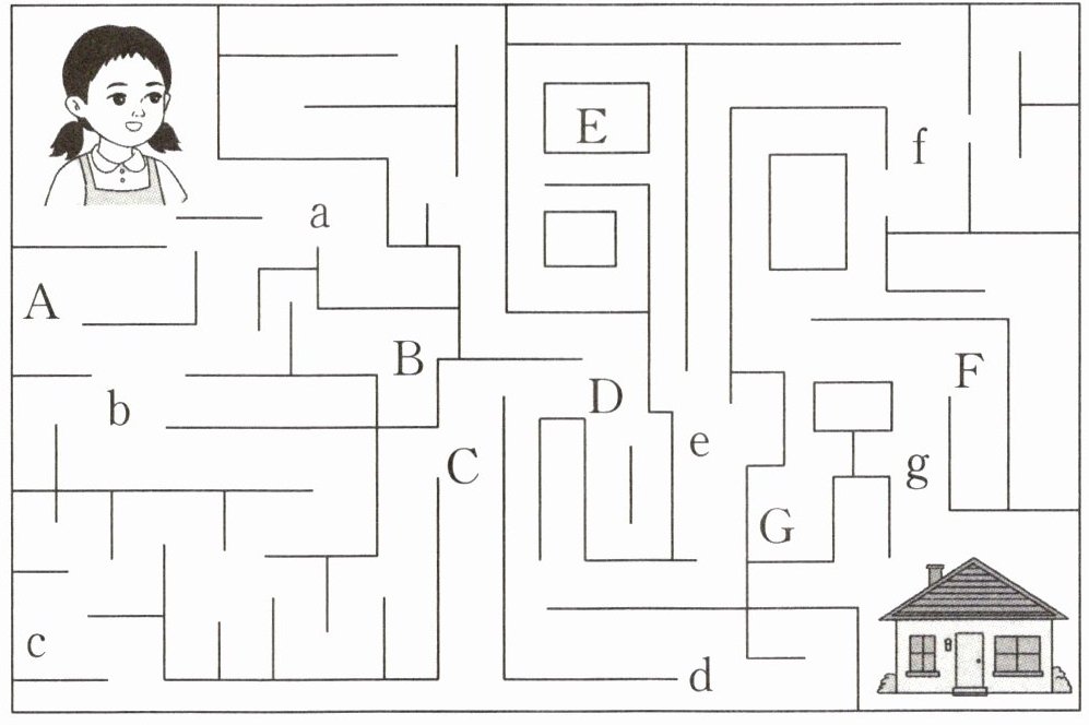 Ⅴ. Look and draw. (看地图,沿着小写字母顺序,画出婷婷回家的路线吧。)