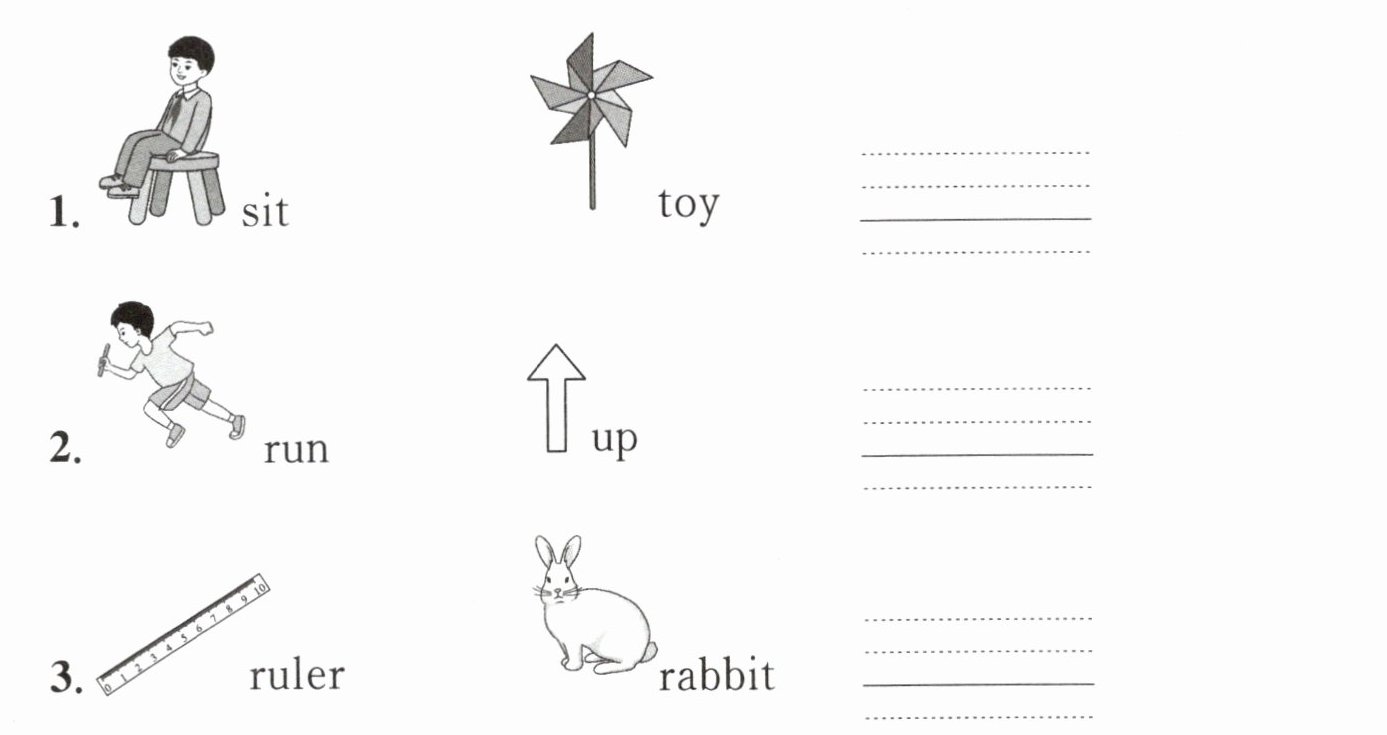 Ⅴ. Look and write. (看图片,将你看到的字母按字母表的顺序写在四线三格中,大小写都要写噢。)