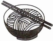1. noodles; vegetables 2. a sandwich; chicken 3. orange juice 4. a hot dog