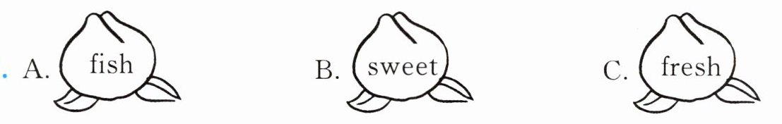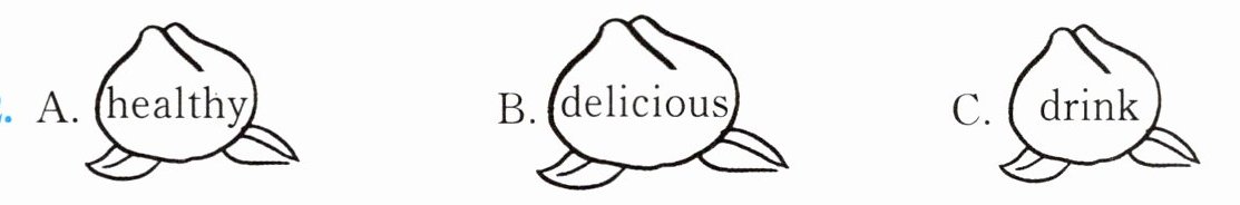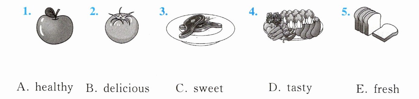 A. healthy B. delicious C. sweet D. tasty E. fresh