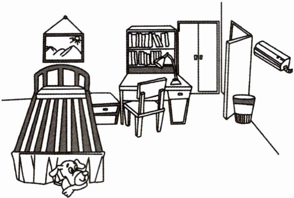 1. There are lots of flowers in it. 2. My father can draw very well. 3. Where is the dog? 4. Many books are on the desk. 5. The dog is under the desk.