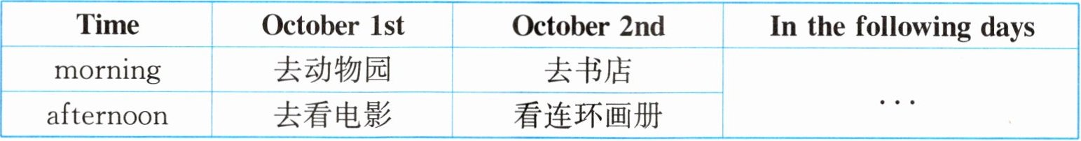 | afternoon | 去看电影 | 看连环画册 | |______