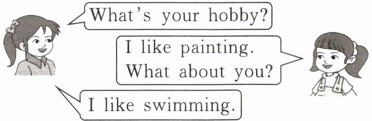 - 提问:What is+某人的+hobby? (……的爱好是什么?)