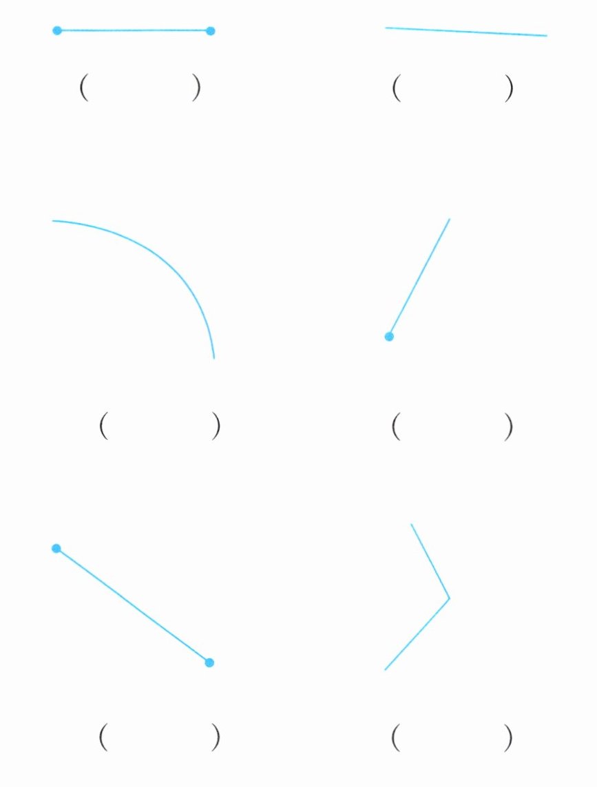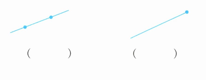 在线段下面画“√”,在射线下面画“○”,在直线下面画“×”