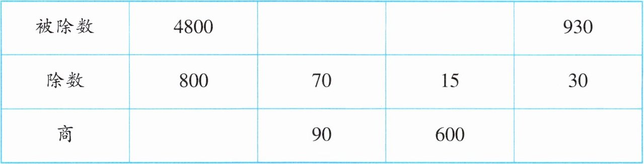 | 被除数 | 4800 | 6300 | 9000 | 930 |