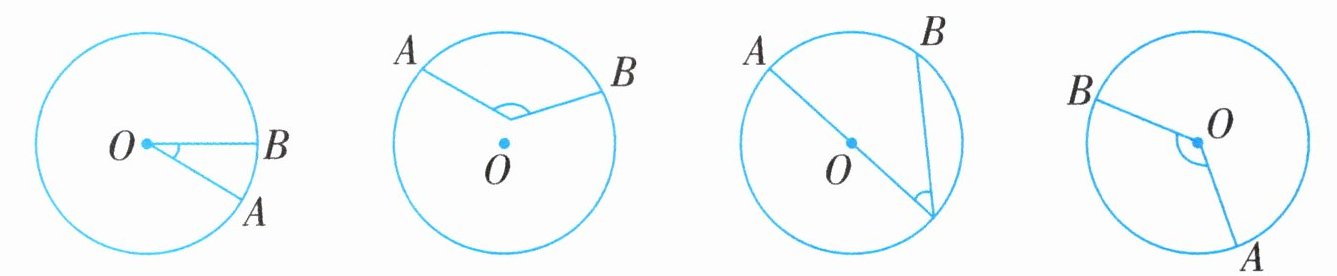 第二个角:该角的顶点在圆心,所以它是圆心角。
