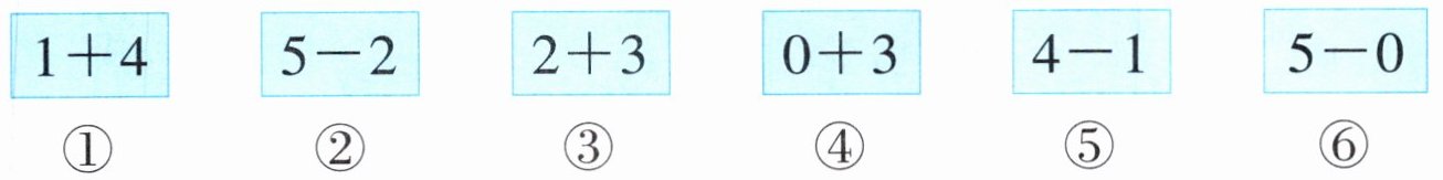 方法二:得数是 5 的算式,①、⑤、⑥ ;得数不是 5 的算式,②、③、④。
