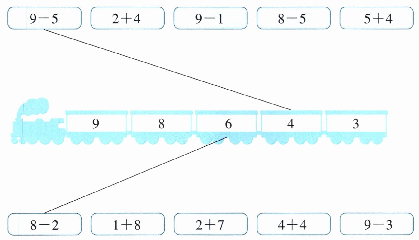 解析:题目考查$10$以内数的加减法,通过画图辅助理解加减法运算。对于加法,如$7 + 2$,可以画$7$个圆圈,再画$2$个圆圈,数总数得到结果;对于减法,如$9 - 7$,画$9$个圆圈,划掉$7$个,数剩下个数得到结果。同时,根据加减法的互逆关系来计算方框里的数,如$5 + □ = 9$,想$9 - 5 = 4$,所以方框填$4$。
