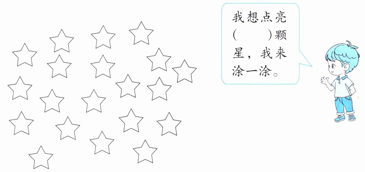 解析:本题主要考查对数的认识,可根据自己的想法选择想点亮的星星数量,然后进行涂色。